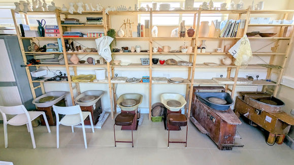 The Pottery Hut studio has six potter's wheels, and space for eight people to work comfortably at a bench for hand building. When you book a block of six classes, you will choose wheel or bench for that block, (at the same price) and we will allocate a space to you. When you start, we will find out what you want to learn or practice. We are ready to teach you as an absolute beginner, or someone with any level of potting experience. The community nature of The Pottery Hut makes it a place to share ideas, inspire, and encourage one-another. Make great pots, and great friends.